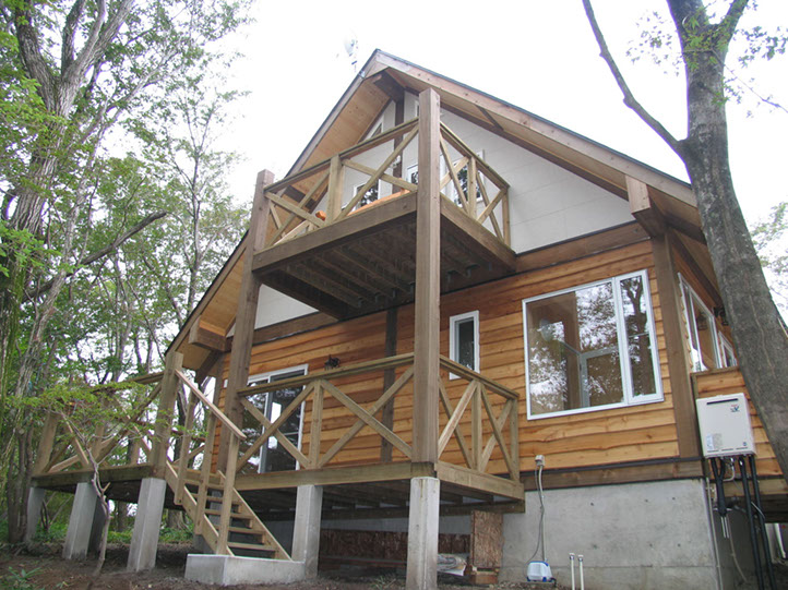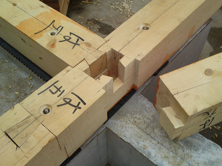 カナダ・ブリティッシュ・コロンビア州山中にて確保する所から粗製材、輸入輸送、製材、刻み、仕口継手加工までを担当させて頂きました。