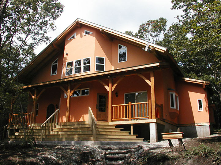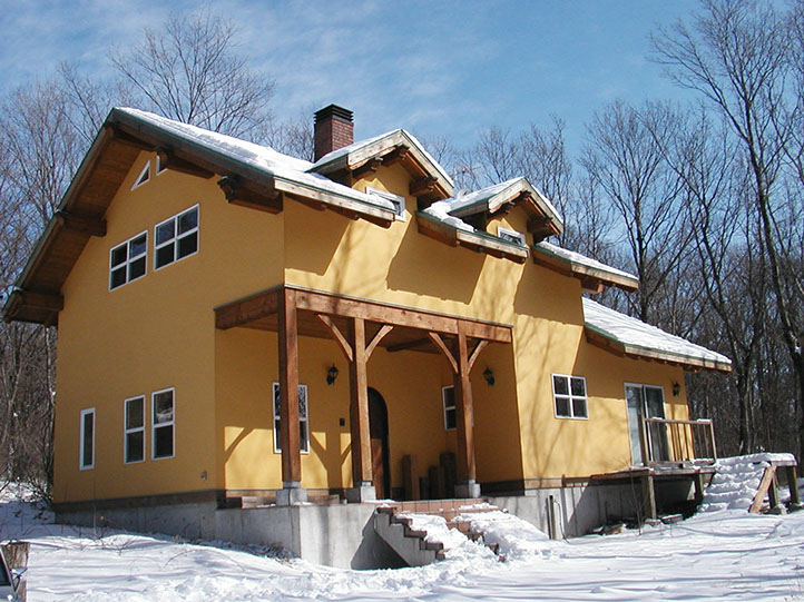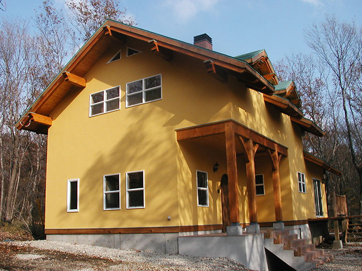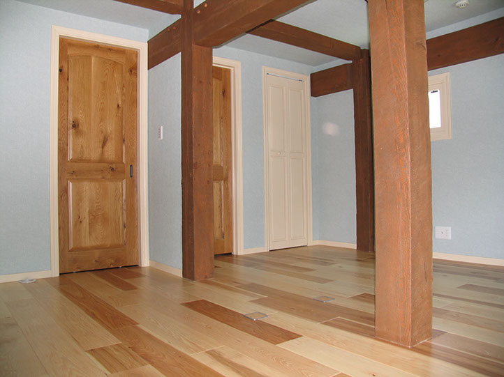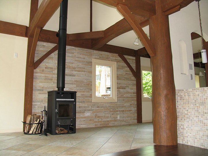 元々古民家のような日本の伝統的な建築に魅力を感じていたものの、現代の細い柱と金物で補強した在来工法は好きでなかったため、ティンバーフレームは非常に魅力的でした。カナダのモデルハウスの写真もとても気に入り、すぐに問い合わせのメールを送りました。
