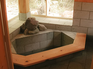 オシャレな色合いに癒され、湯気の中に漂う木の香りにも癒され・・・。