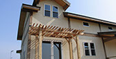 テラスドア前にパーゴラを設置 緑越しの陰影を楽しみつつ真夏の日差しを低減させます