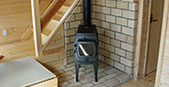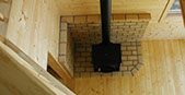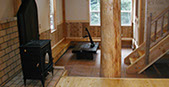 薪ストーブは暖気対流・排煙効率を重視した位置に。