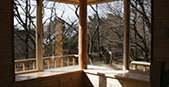 木々の葉が落ちる冬にたっぷりの日差しが確保できるようコーナー出窓を採用