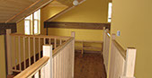 吹き抜け上にはロフト部左右に分かれたプライベートスペースへのアクセスにキャットウォークを配置