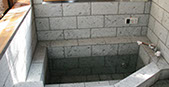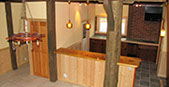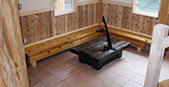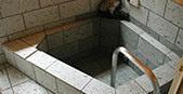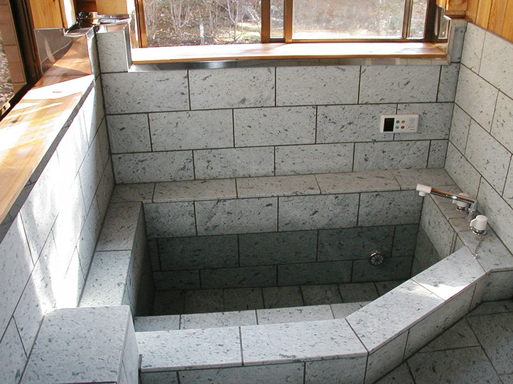 国産ヒノキの壁と十和田石貼り・どっぷり肩まで浸かれます。
