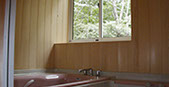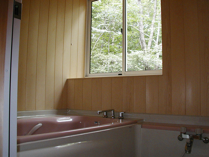 標準的な日本家屋のバスタブと木材の絶妙なコラボ。雰囲気と使い勝手の一石二鳥!