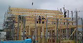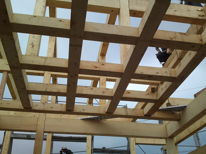 カナダ・ブリティッシュ・コロンビア州山中にて確保する所から粗製材、輸入輸送、製材、刻み、仕口継手加工までを担当させて頂きました。