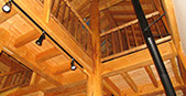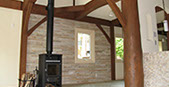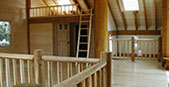 リビングスペースは吹き抜け。ティンバーフレーム躯体の力強さを気持ちのいい大空間で