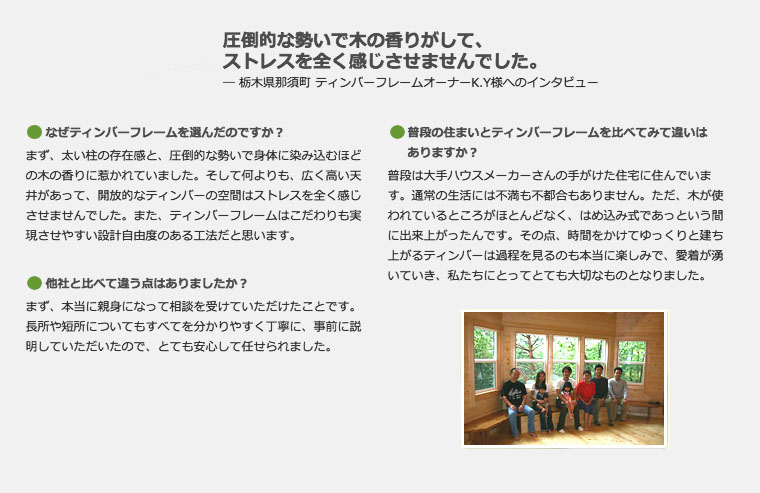 。代表の金子さんは木に対する想いがとても強く、ティンバーフレームに対する自信も満ちていました。